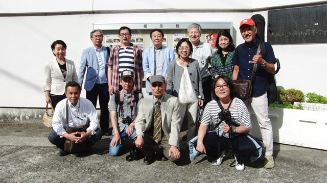 正門前で別ルートでお越しくださったOBと合流して、ひとまず集合写真を撮影しました。
