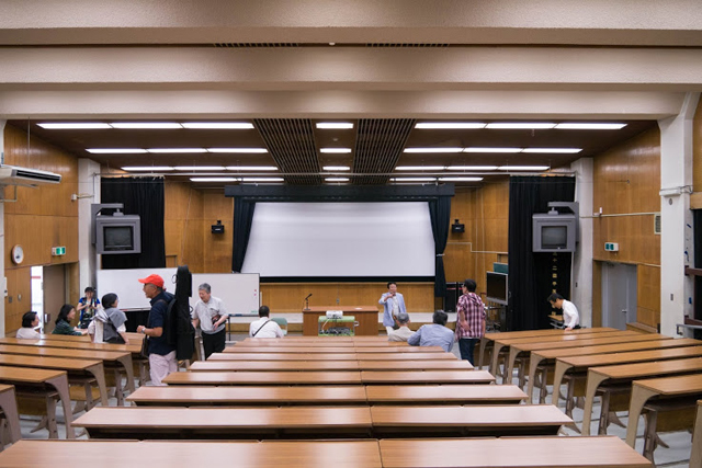 視聴覚教室です。定例の「カルティベートコンサート」や、文化祭1日目のコンサートはここで開催しました。と、懐かしさにひたっていると…