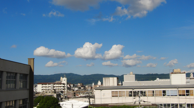 多くの学生、クラブが生駒連山を見渡せるこの「空中渡り廊下」で記念写真を撮影していました。