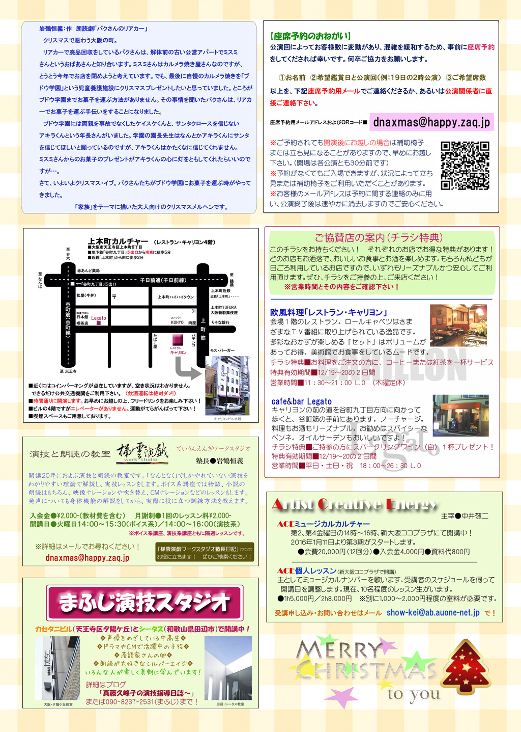 座席予約メールアドレス:dnaxmas@happy.zaq.jp