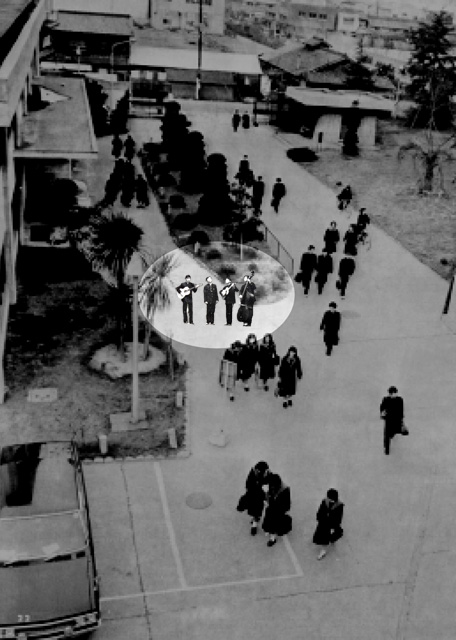 高校時代の思い出はあまりないのですが、バンド練習は校舎の渡り廊下や校門前の校庭など、室内じゃなく屋外でしていたと思います。