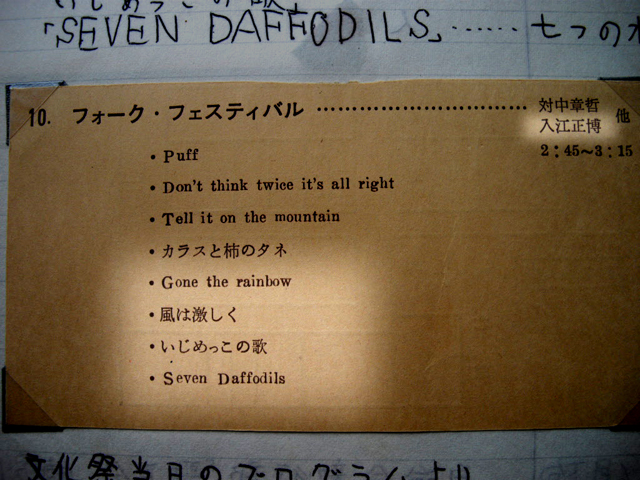フォークフェスティバルの後、どこかの部が開いていた教室喫茶店で。