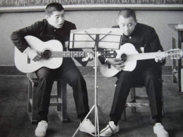 定時制の学生で、学校食堂で働いていた何とかチャン(名前忘れました)が、夕方の定時制始業前にいつもフォークソング部の練習を見に来てました。