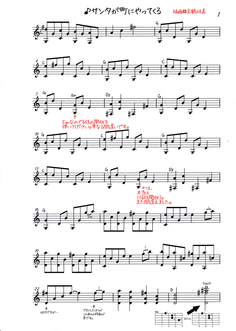 ジングル・ベルだけではいささか淋しいので、「サンタが町にやってくる」のギターアレンジをしてみました。