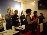 それぞれ再会のあいさつを交わし、旧交を温め合い、カフェ・グラッソのおいしい料理を頂戴し、いよいよ「歌声パーティ」の始まりです。