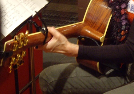 ギタリスト福山隆司さんと、ブルーグラスバンドでギターとベースを担当なさっている堤早苗さんがギターを弾いてくださいました。