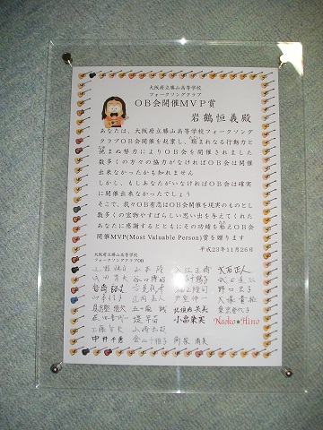 なんでもOB会を開催するきっかけを作ったことに対する「MVP賞」です。
