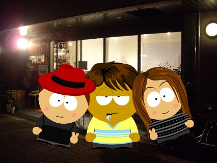 そう言えば・・・誰とは言わんけど「(お嬢さん方は)ボクのタイプなんだよね~」とか言って「一緒に写真撮って~」とデレデレしてるのがおったな・・・・・東京弁の人です。そのときお店の前で撮った写真がこれ・・・